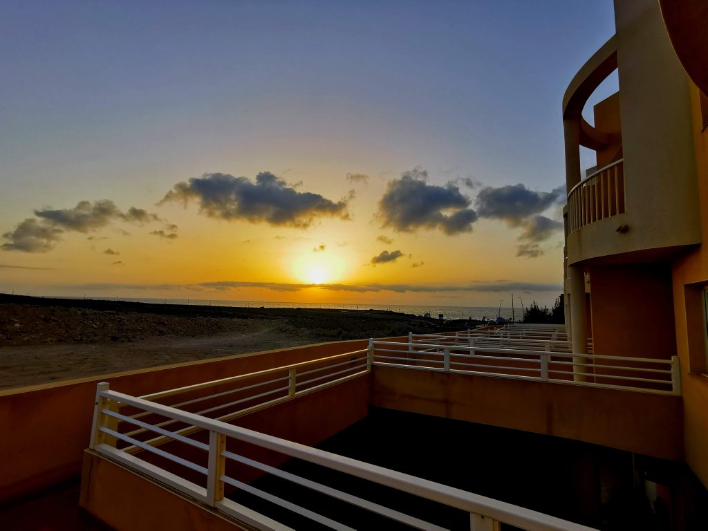 „Calma“ bedeutet Ruhe und Windstille in Spanisch und genau das unterscheidet unsere Unterkunft von vielen anderen auf den Kanarischen Inseln, auf denen das ganze Jahr eine steife Briese weht. Dadurch dass die Terrasse Richtung Süden ausgerichtet ist, wird sie von der Hausreihe gegen den Nord-Ostwind geschützt. So kann man die Sonne den ganzen Tag windgeschützt genießen. Das Haus liegt in der Anlage Amuley Mar II in Caleta de Fuste.