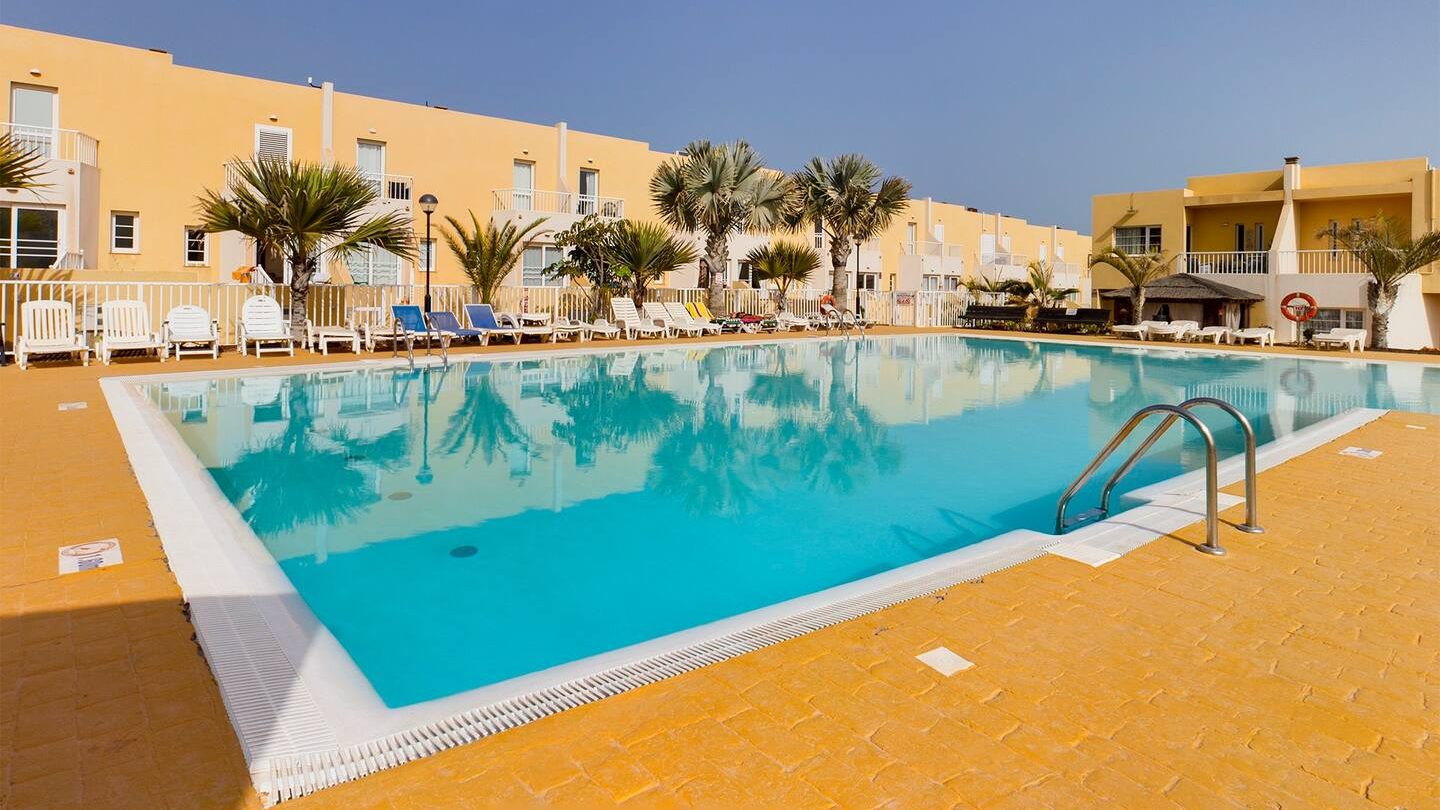 Ein kleines Haus mit 3 Schlafzimmern, Meer- und Poolblick in einer gepflegten Anlage mit einem großen Gemeinschaftspool. Nur 500 m entfernt von dem schönen Strand von Caleta de Fuste, einem beliebten Urlaubsort an der Ostküste Fuerteventuras. Und nur 10 Minuten vom Flughafen Puerto Rosario entfernt, so dass man keinen Mietwagen braucht. Restaurants und Einkaufsmöglichkeiten sind in direkter Umgebung. Fuerteventura als Teil der Kanaren zählt geografisch zu Afrika und ist 100 km von der West-Sahara entfernt mit Sonne und milden Temperaturen über das ganze Jahr.